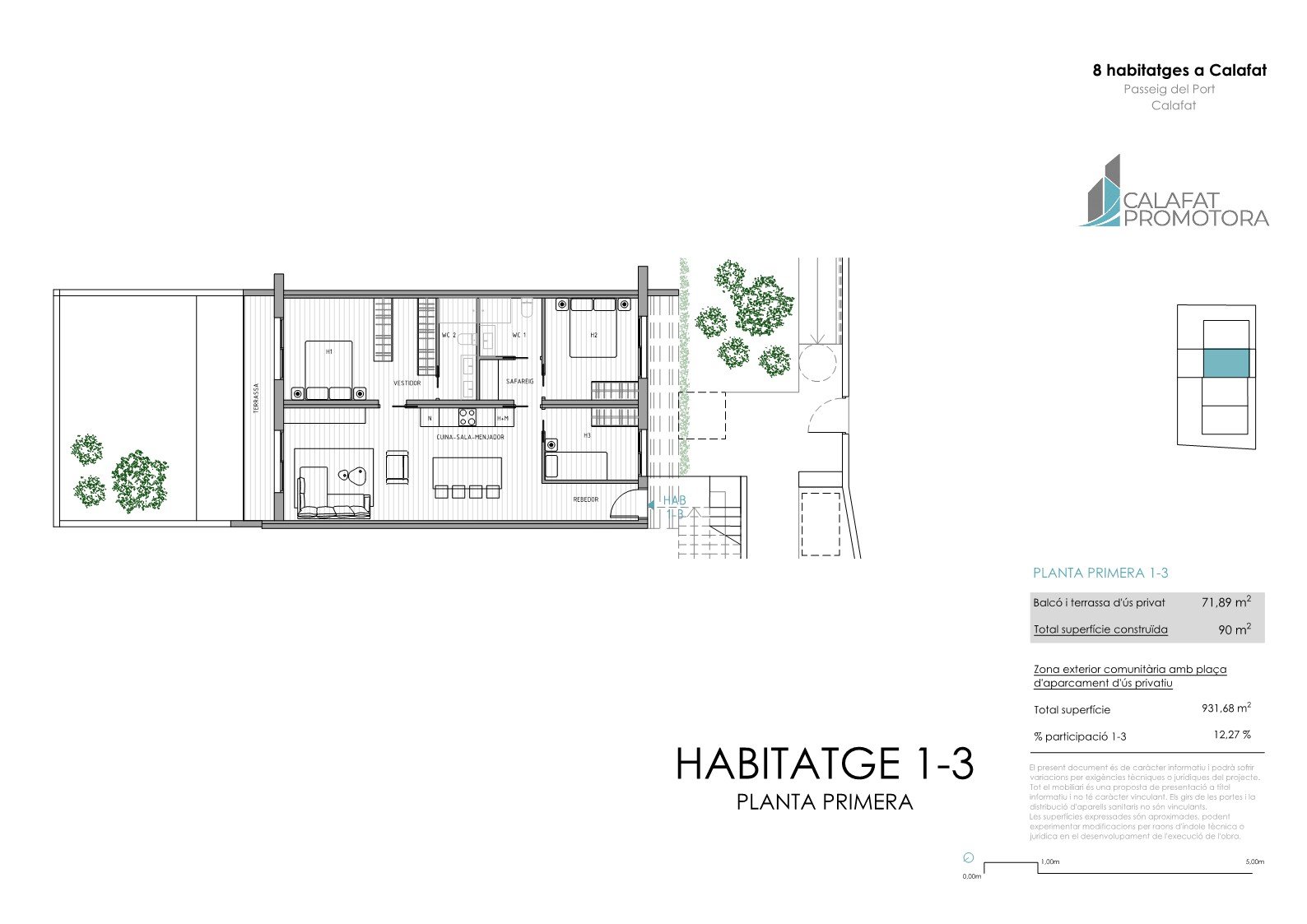 Piso a estrenar en promoción de 8 viviendas en el Passeig del Port, Calafat (L’Ametlla de Mar). Esta vivienda se encuentra en la primera planta y combina comodidad, amplitud exterior y diseño funcional en un entorno tranquilo cerca del mar.